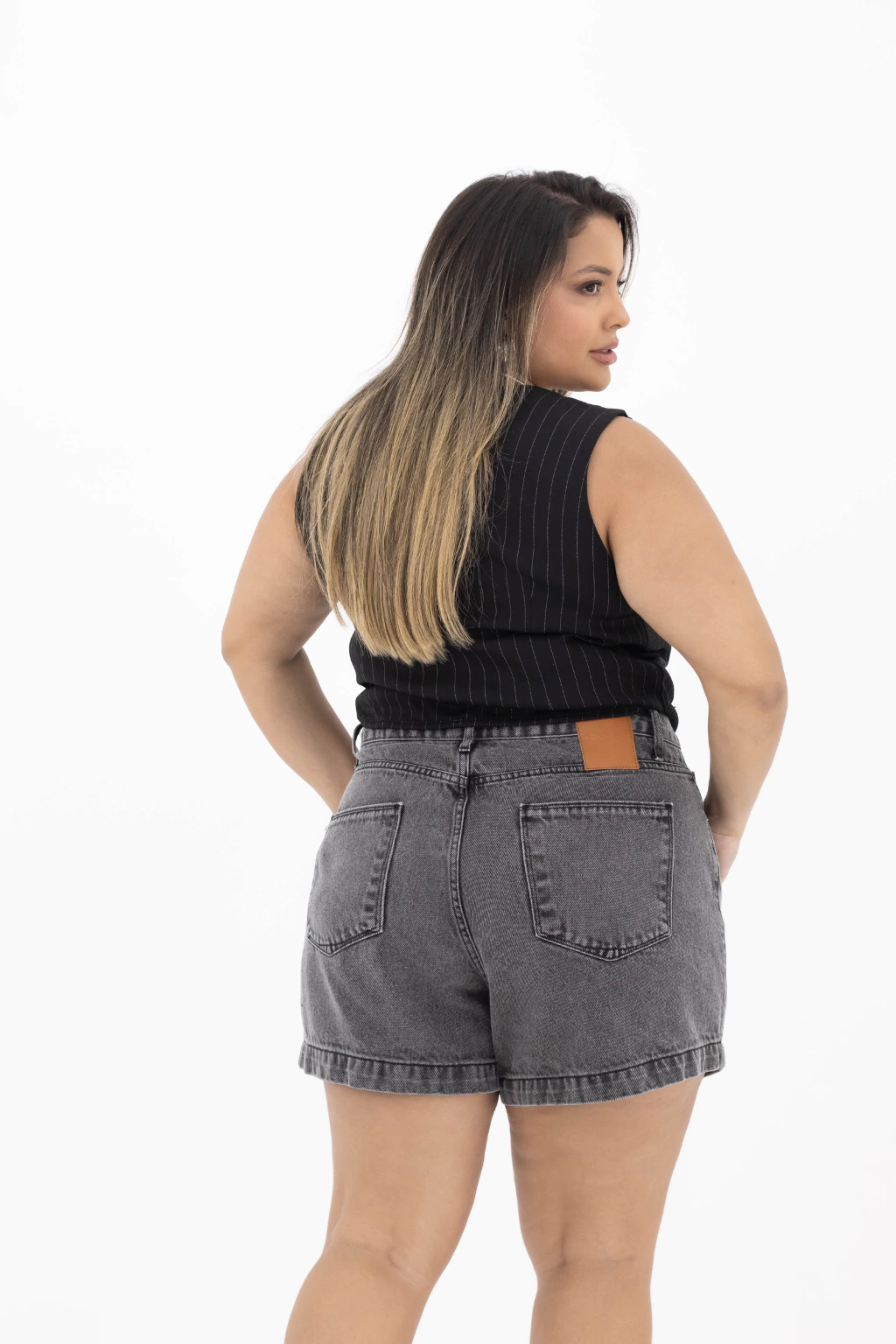 Conforto e estilo em uma peça versátil! Produzido em 100% algodão com tecido pesado, este short jeans garante caimento estruturado e maior durabilidade. Possui modelagem plus size que valoriza o corpo, cintura média, bolsos funcionais e acabamento em lavagem black despojada. Uma escolha prática e moderna para compor looks do dia a dia.